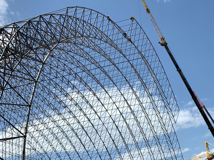 (2)网架加工前应对现场尺寸进行复测,确认无误后方可进行加工、安装;网架制作、运输、安装应遵守《空间网格结构技术规程》JGJ7-2010、《钢网架大石桥螺栓球节点》JG/T 10-2009、《钢网架大石桥螺栓球节点用高强度螺栓》 GB/T 16939-2016、《大石桥钢结构大石桥工程大石桥施工规范》 GB50755-2012、《大石桥钢结构大石桥工程施工质量验收标准》 GB50205-2020。